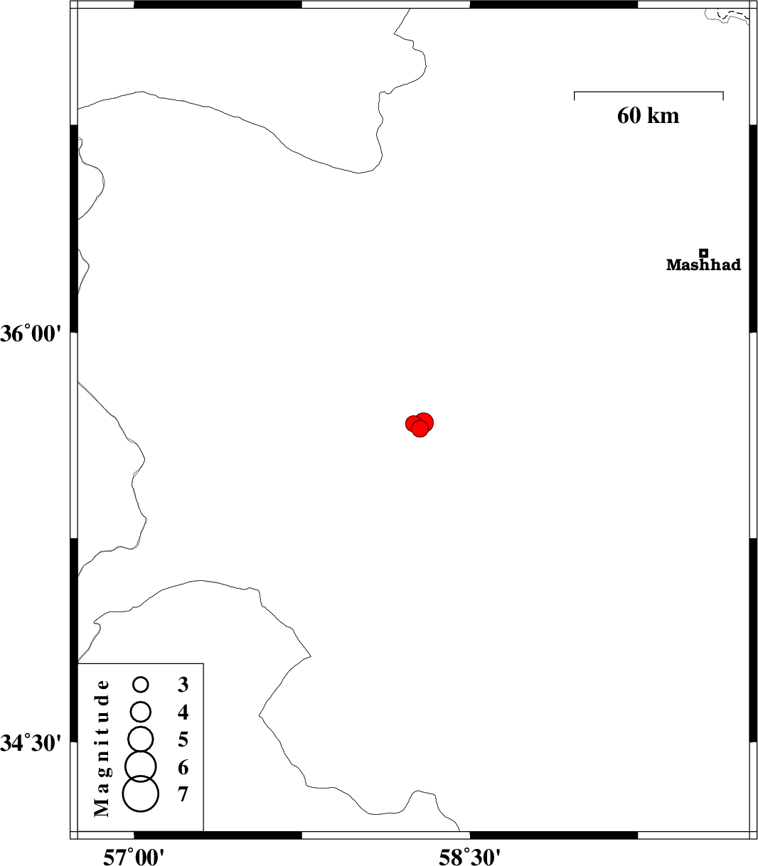 2021/12/23 15:47:52.9 19:17:52.9 35.67258.29312 ML4 Khorasan(center) Province, 51 km North-West of Kashmar