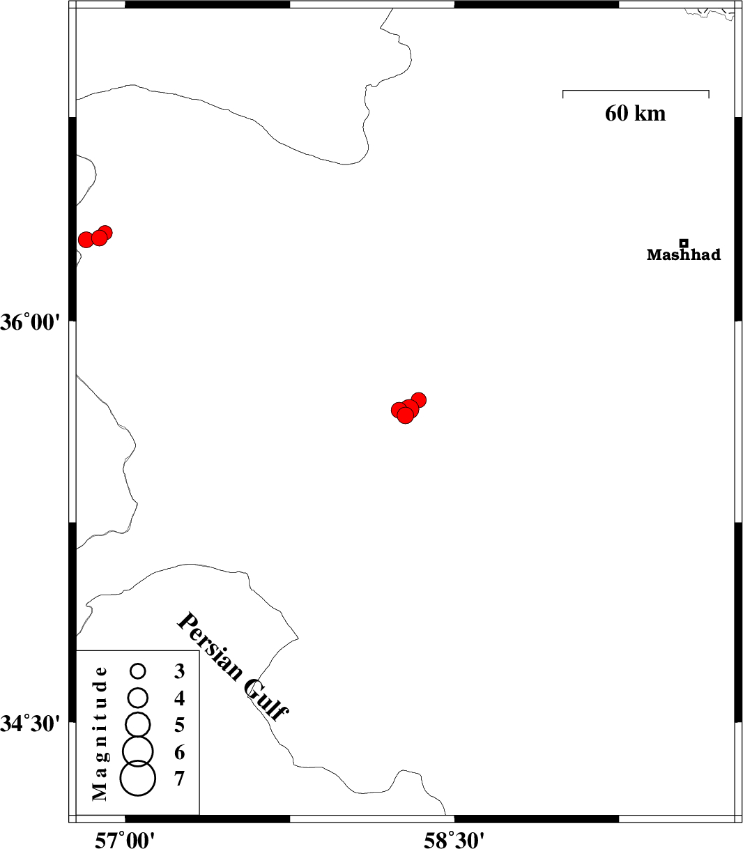 2021/12/23 15:47:52.9 19:17:52.9 35.67258.29312 ML4 Khorasan(center) Province, 51 km North-West of Kashmar