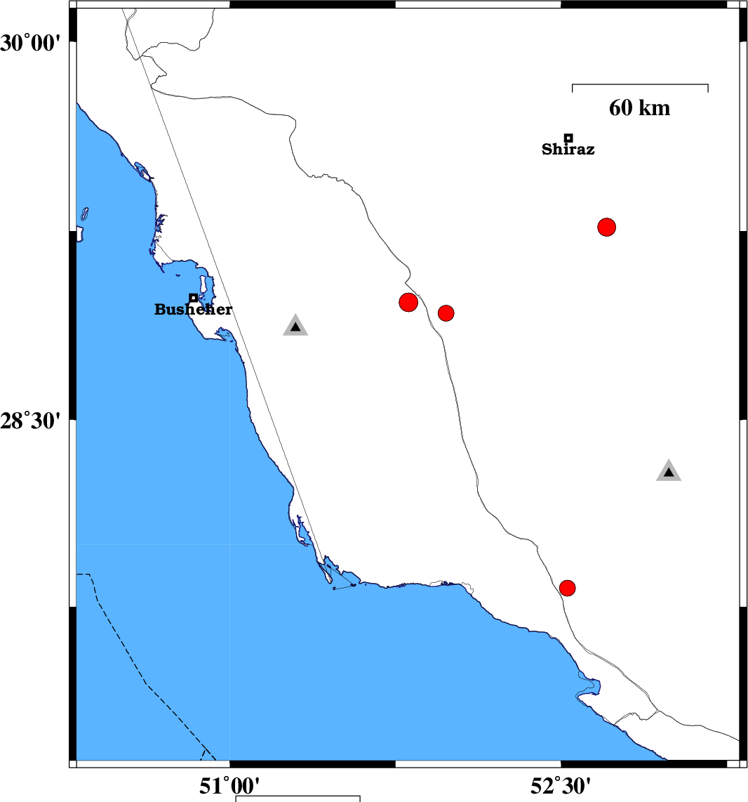 | 2021/12/22 | 00:06:23.2 | 03:36:23.2 | 29.722 | 51.258 | 12 | ML3.2 | Fars Province, 40 km North-West of Kazerun |