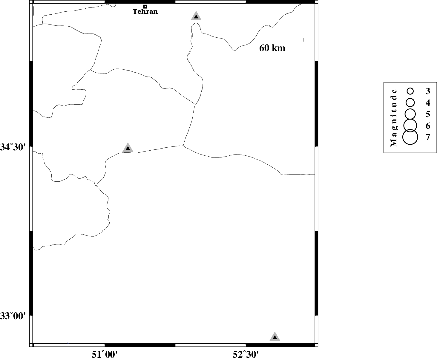 | 2021/12/30 | 19:21:04.2 | 22:51:04.2 | 34.248 | 51.733 | 7 | ML3.6 | Esfahan Province, 32 km North-East of Aran va bidgol | ||