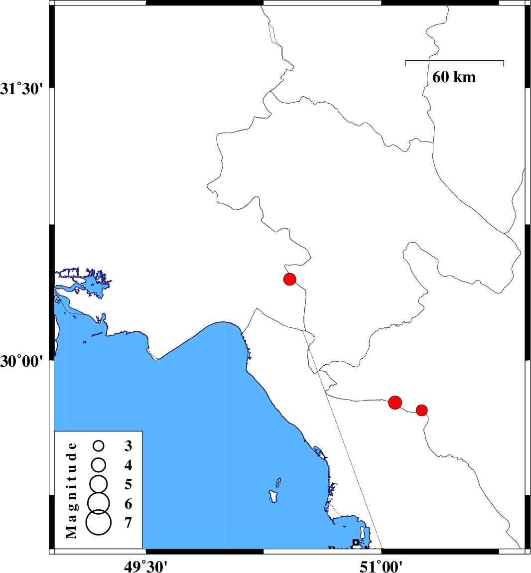 | 2021/12/22 | 00:06:23.2 | 03:36:23.2 | 29.722 | 51.258 | 12 | ML3.2 | Fars Province, 40 km North-West of Kazerun |