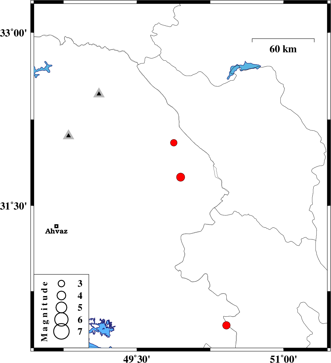 | 2021/12/26 | 22:04:44.5 | 01:34:44.5 | 32.049 | 49.877 | 12 | ML3.1 | Khoozestan Province, 24 km North of Izeh |
