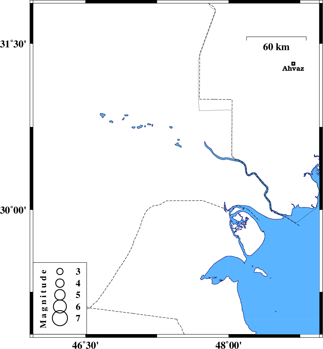 | 2022/01/06 | 18:40:47.1 | 22:10:47.1 | 30.361 | 47.451 | 12 | ML4.3 | Iraq, 38 km South-West of Al Basrah |