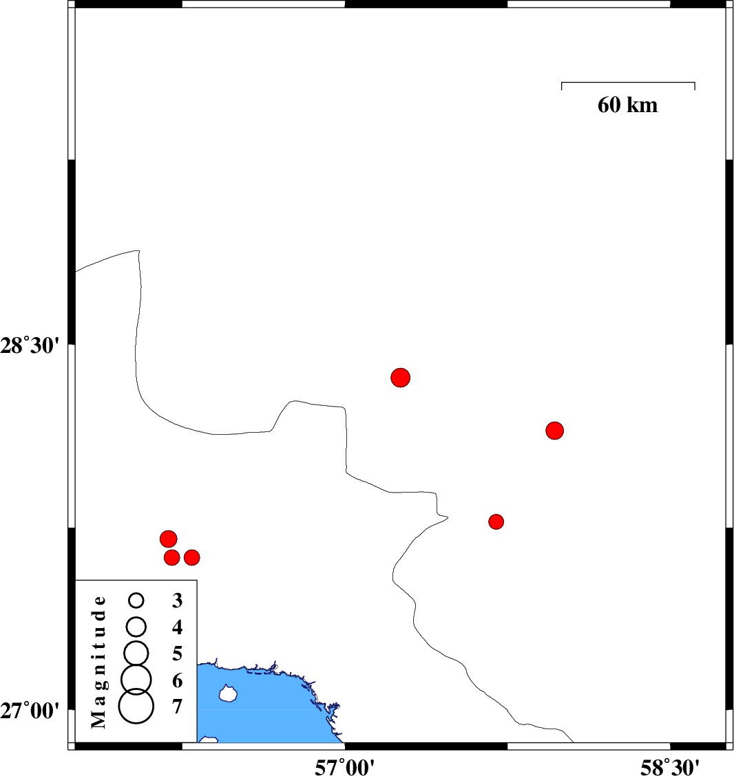 | 2022/01/03 | 21:03:20.7 | 00:33:20.7 | 27.702 | 56.186 | 12 | ML3.5 | Hormozgan Province, 58 km North of Bandar-e abbas |