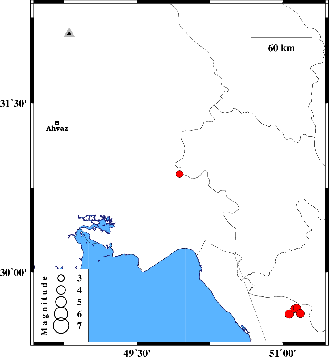 | 2022/01/13 | 12:32:47.4 | 16:02:47.4 | 30.873 | 49.937 | 12 | ML3.2 | Khoozestan Province, 25 km North-East of Omidiyeh | ||