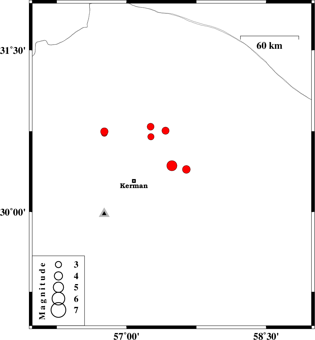 2022/01/15 | 13:35:34.4 | 17:05:34.4 | 30.43 | 57.487 | 12 | ML5 | Kerman Province, 42 km North-East of Kerman | ||