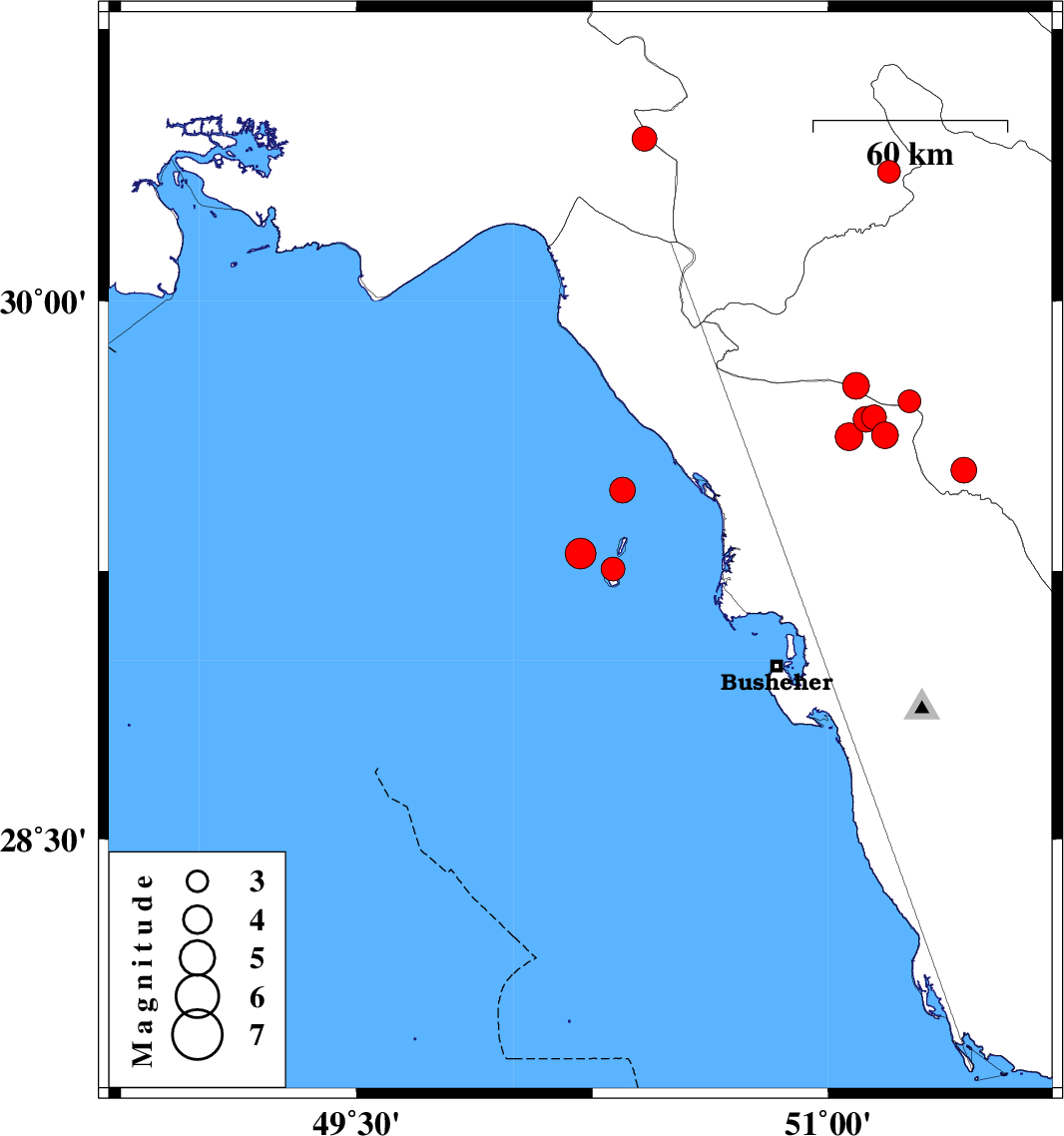 | 2022/01/15 | 12:25:23.0 | 15:55:23.0 | 29.299 | 50.212 | 12 | ML4.4 | Persian Gulf, 42 km South-West of Bandar-e genaveh | ||