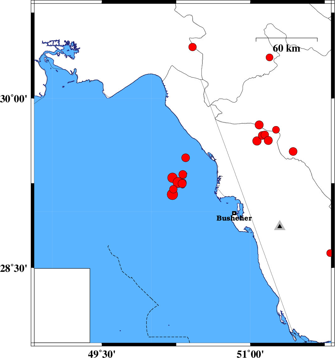 2022/01/15 | 14:20:57.9 | 17:50:57.9 | 29.476 | 50.346 | 12 | ML:3.7 | Persian Gulf, 20 km -West of Bandar-e genaveh | ||
