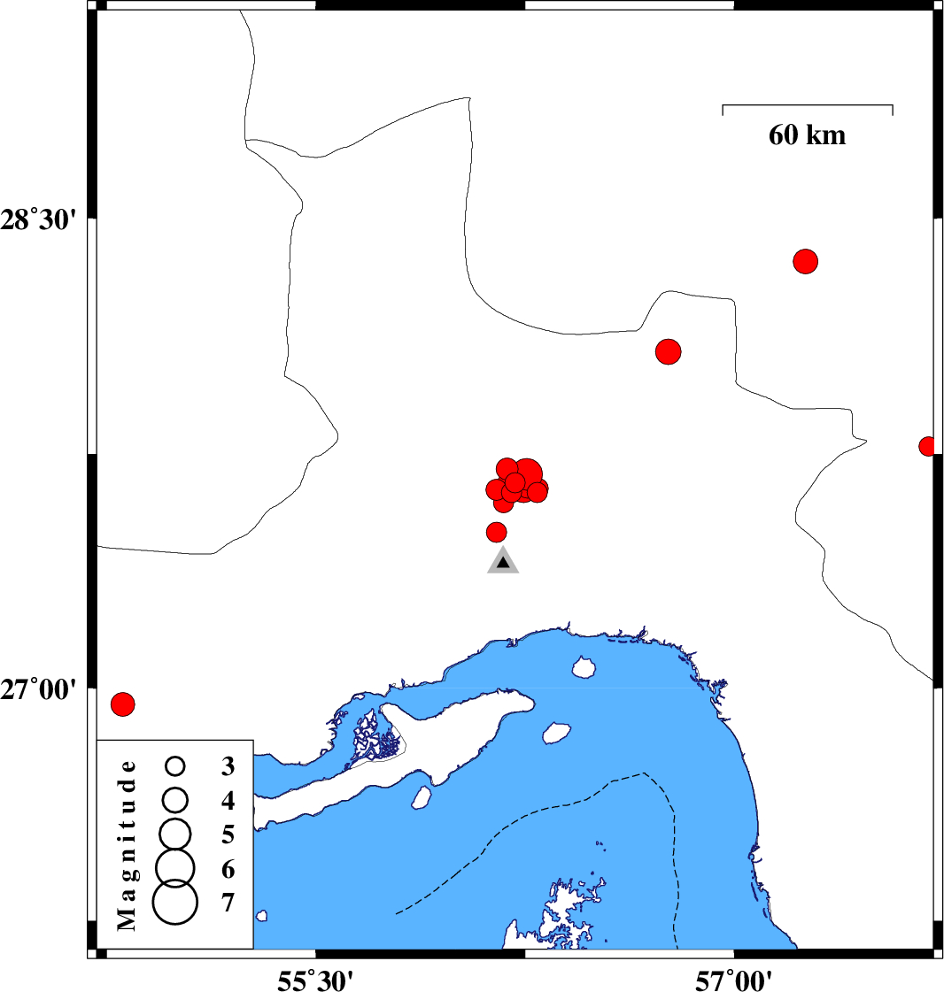 | 2021/12/27 | 07:31:55.4 | 11:01:55.4 | 27.685 | 56.255 | 8 | ML5.1 | Hormozgan Province, 56 km North of Bandar-e abbas | ||