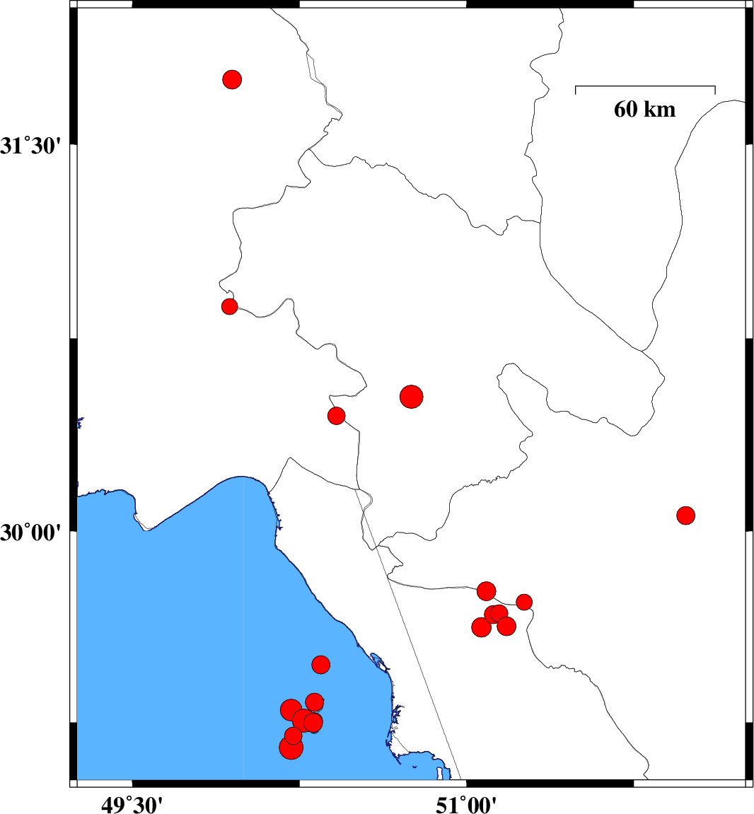| 2022/01/13 | 12:32:47.4 | 16:02:47.4 | 30.873 | 49.937 | 12 | ML3.2 | Khoozestan Province, 25 km North-East of Omidiyeh | ||