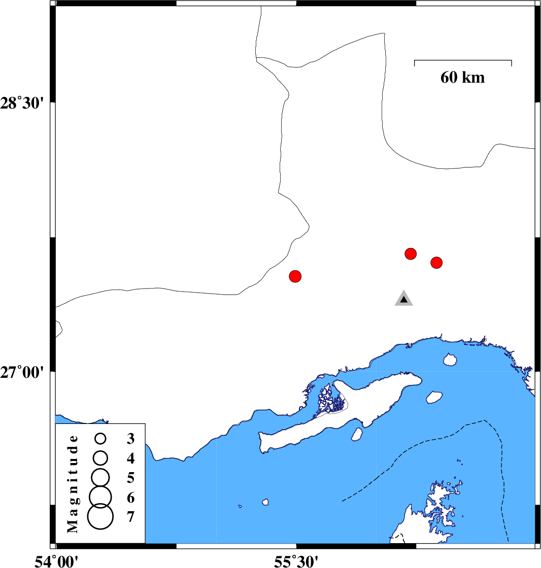 | 2022/01/22 | 21:54:29.7 | 01:24:29.7 | 27.532 | 55.492 | 12 | ML3.4 | Hormozgan Province, 87 km North-West of Bandar-e abbas | ||