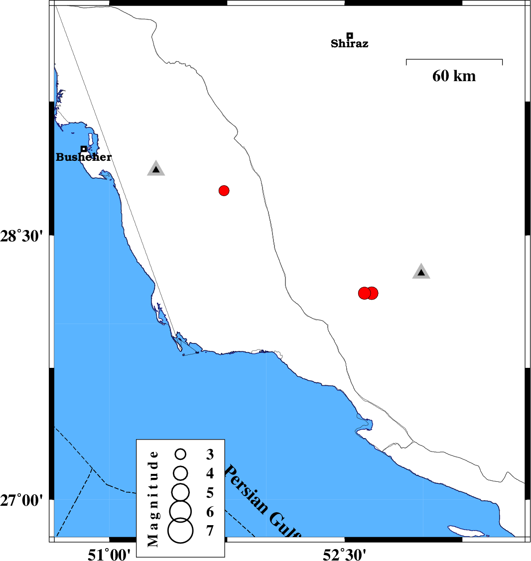 | 2022/02/16 | 15:08:41.8 | 18:38:41.8 | 28.287 | 52.102 | 12 | ML3.5 | Bushehr Province, 51 km North of Bandar-e kangan | ||