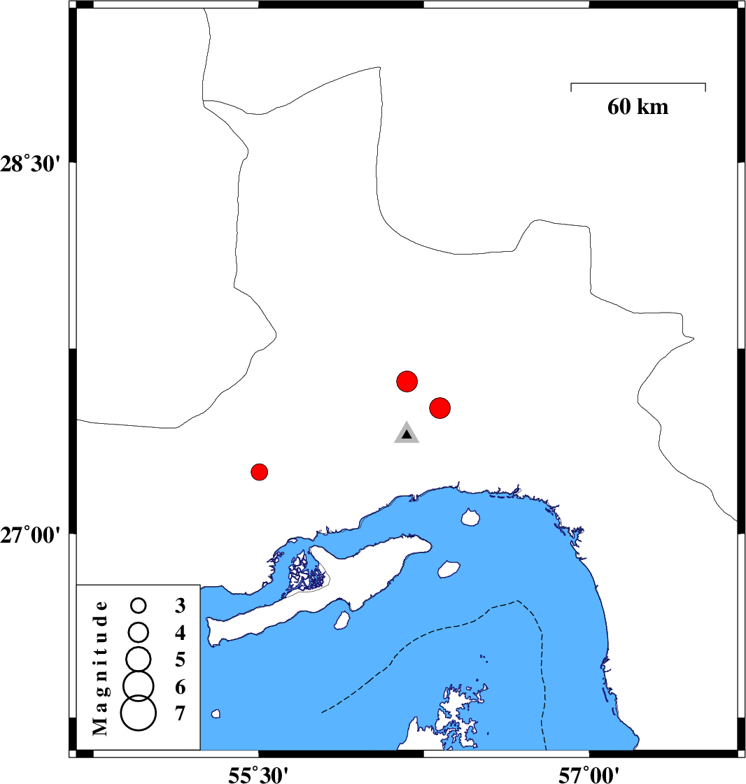 | 2022/02/24 | 01:48:34.6 | 05:18:34.6 | 27.623 | 56.173 | 10 | ML3.6 | Hormozgan Province, 50 km North-West of Bandar-e abbas | ||