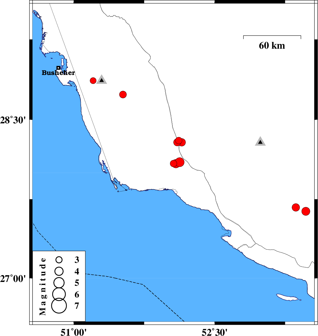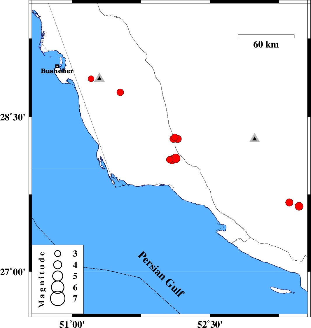 | 2022/01/21 | 12:49:42.9 | 16:19:42.9 | 28.085 | 52.087 | 10 | ML4.1 | Bushehr Province, 29 km North of Bandar-e kangan |