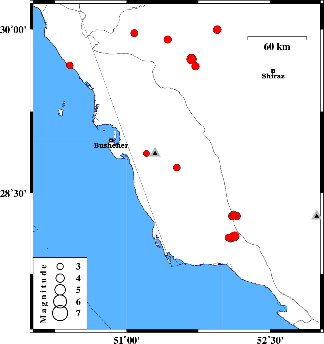 2022/01/30 | 23:47:45.4 | 03:17:45.4 | 29.672 | 50.406 | 12 | ML:3.3 | Bushehr Province, 15 km -West of Bandar-e genaveh | ||