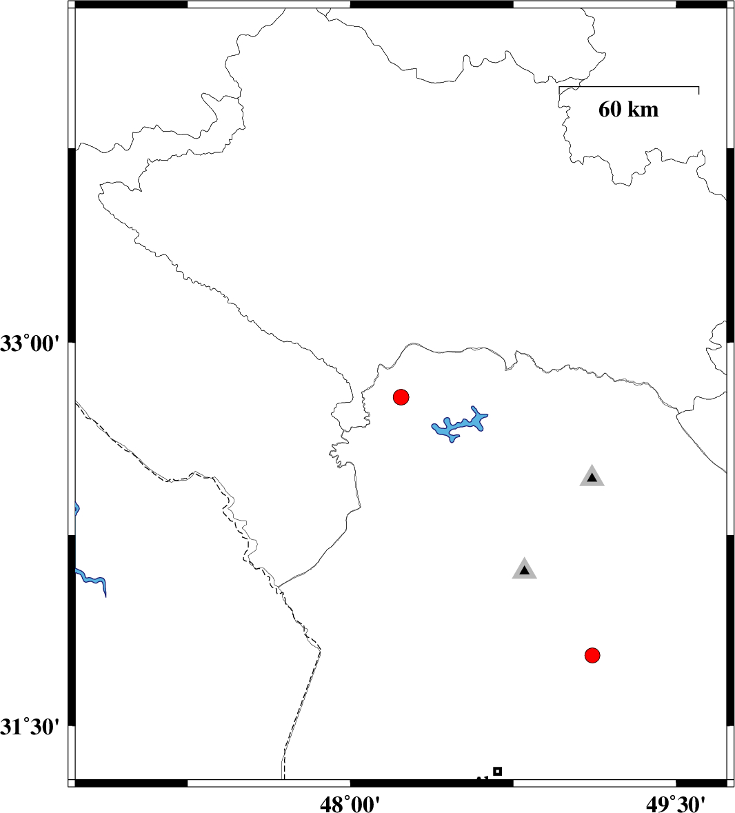 | 2022/02/17 | 09:35:40.3 | 13:05:40.3 | 32.788 | 48.233 | 10 | ML3.3 | Khoozestan Province, 38 km North-West of Andimeshk | ||
