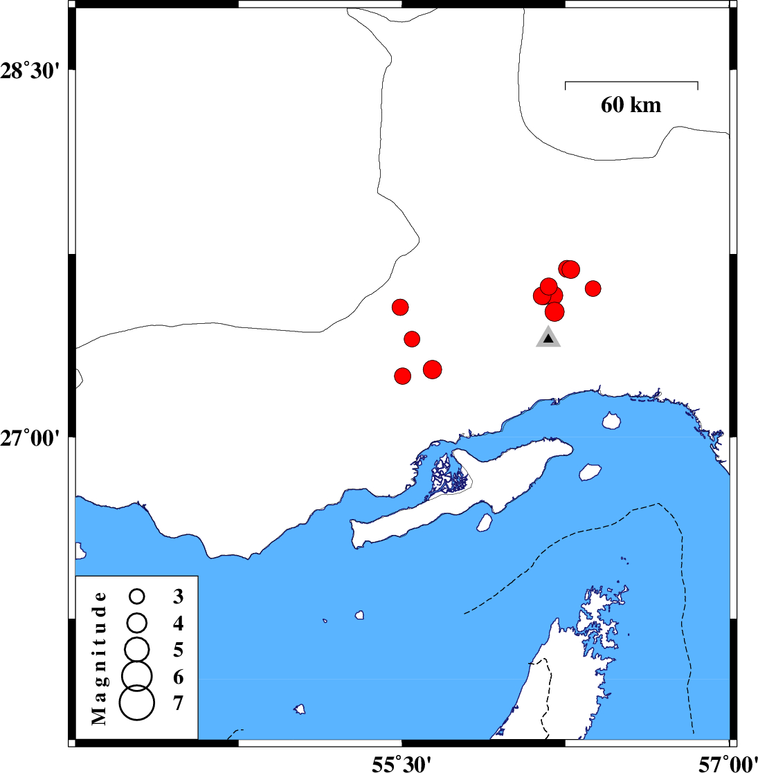 | 2022/01/20 | 15:23:08.3 | 18:53:08.3 | 27.608 | 56.376 | 12 | ML3.3 | Hormozgan Province, 48 km North of Bandar-e abbas |