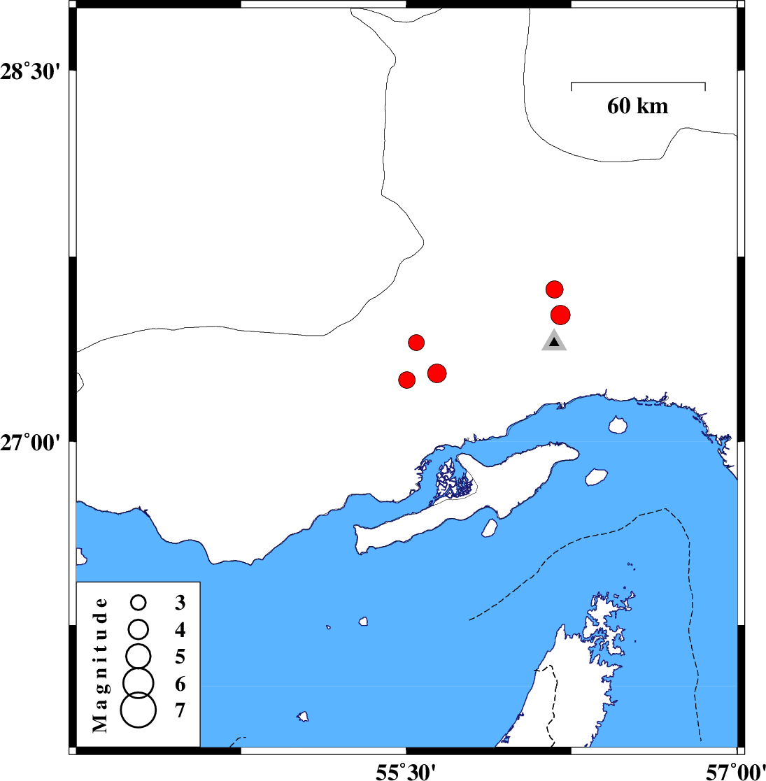 | 2022/02/16 | 00:49:28.3 | 04:19:28.3 | 27.277 | 55.639 | 10 | ML3.8 | Hormozgan Province, 64 km -West of Bandar-e abbas | ||