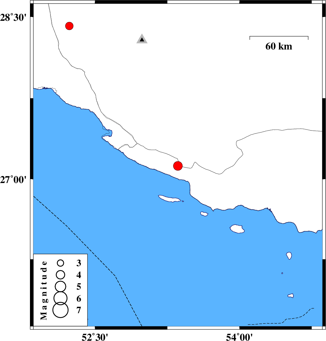 | 2022/03/04 | 10:46:13.9 | 14:16:13.9 | 27.122 | 53.36 | 12 | ML4.3 | Hormozgan Province, 30 km South-East of Lamerd | ||