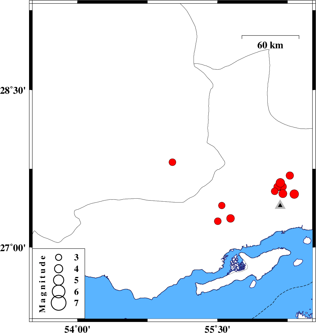 | 2022/02/16 | 02:09:03.4 | 05:39:03.4 | 27.513 | 56.2 | 15 | ML4 | Hormozgan Province, 37 km North of Bandar-e abbas | ||