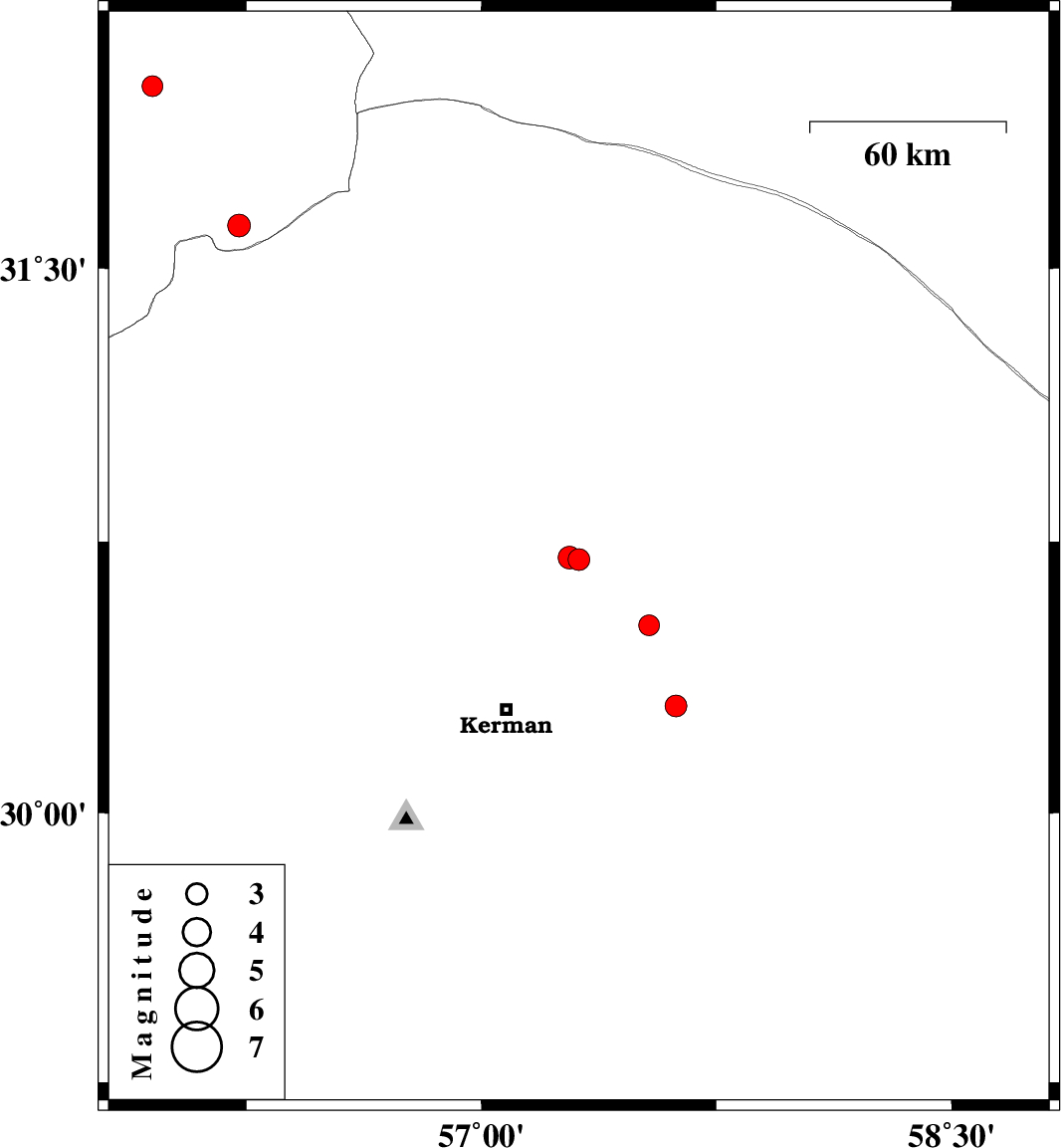 | 2022/03/01 | 00:39:59.3 | 04:09:59.3 | 30.707 | 57.281 | 12 | ML3.2 | Kerman Province, 50 km North-East of Kerman | ||