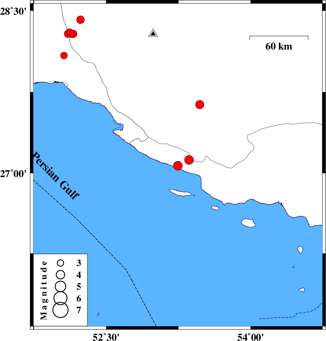 | 2022/02/16 | 15:08:41.8 | 18:38:41.8 | 28.287 | 52.102 | 12 | ML3.5 | Bushehr Province, 51 km North of Bandar-e kangan | ||