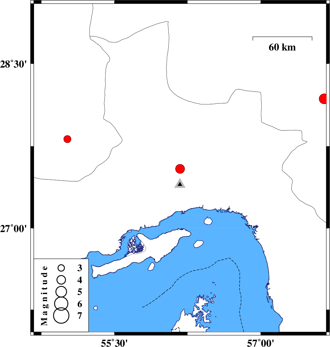 | 2022/03/08 | 23:21:39.0 | 02:51:39.0 | 27.543 | 56.173 | 14 | ML4.3 | Hormozgan Province, 41 km North-West of Bandar-e abbas | ||