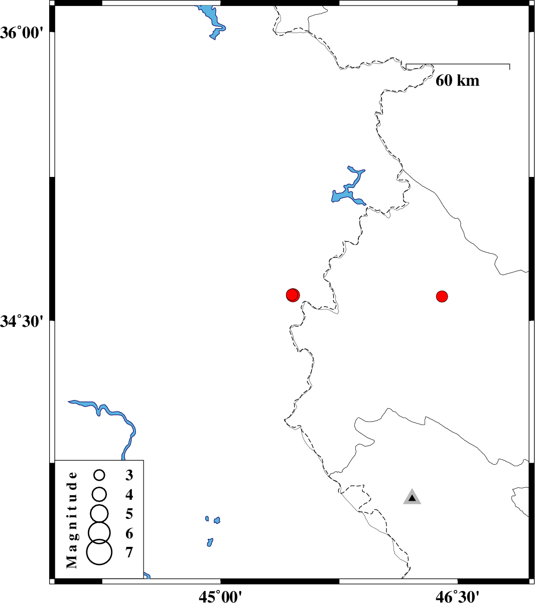 | 2022/03/09 | 07:56:18.8 | 11:26:18.8 | 34.626 | 46.4 | 12 | ML3.3 | Kermanshah Province, 23 km South of Javanrud |