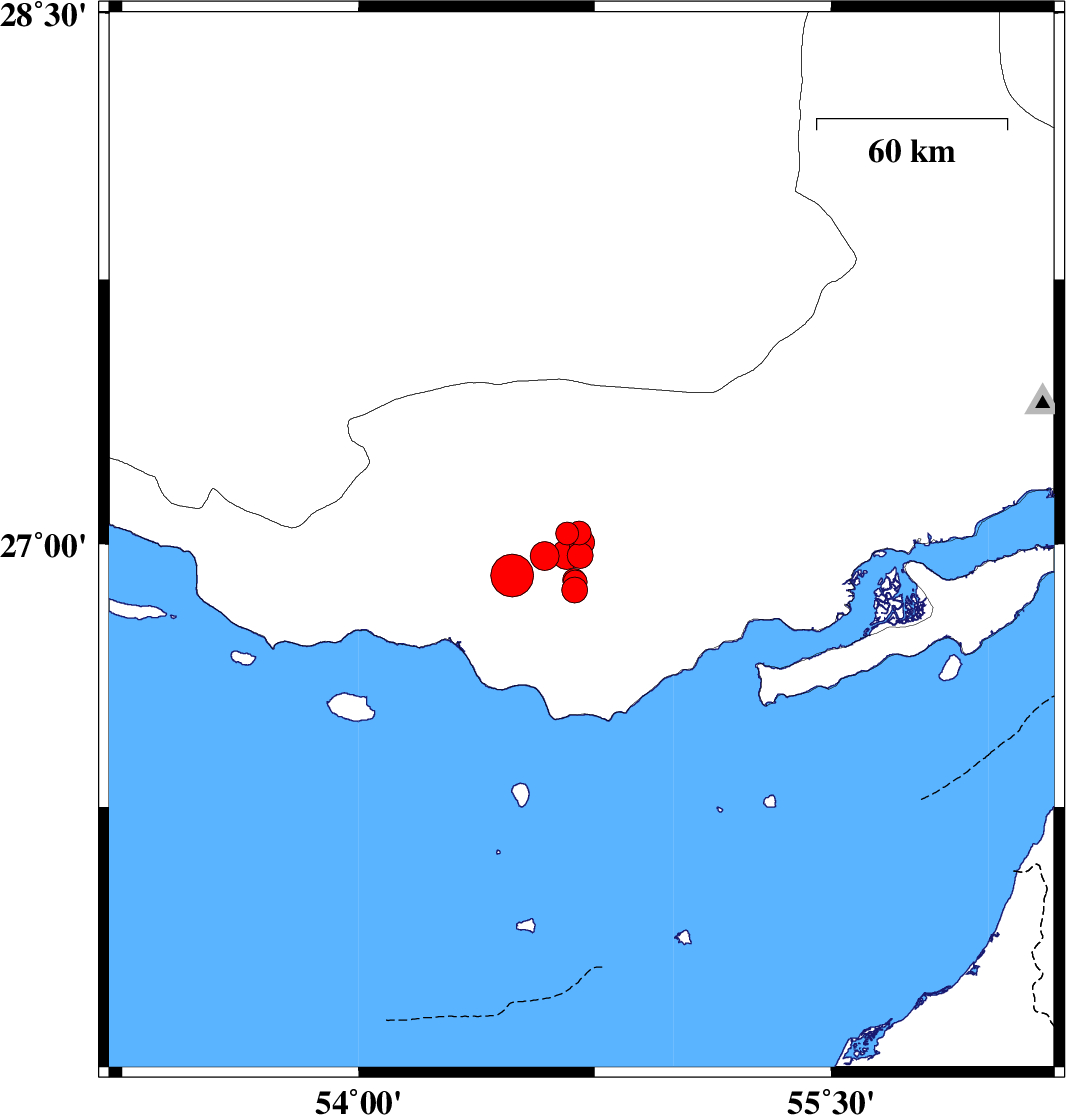 2022/03/17 02:45:04.9 06:15:04.9 27.00454.70827 ML3.7 Hormozgan Province, 40 km South-East of Bastak