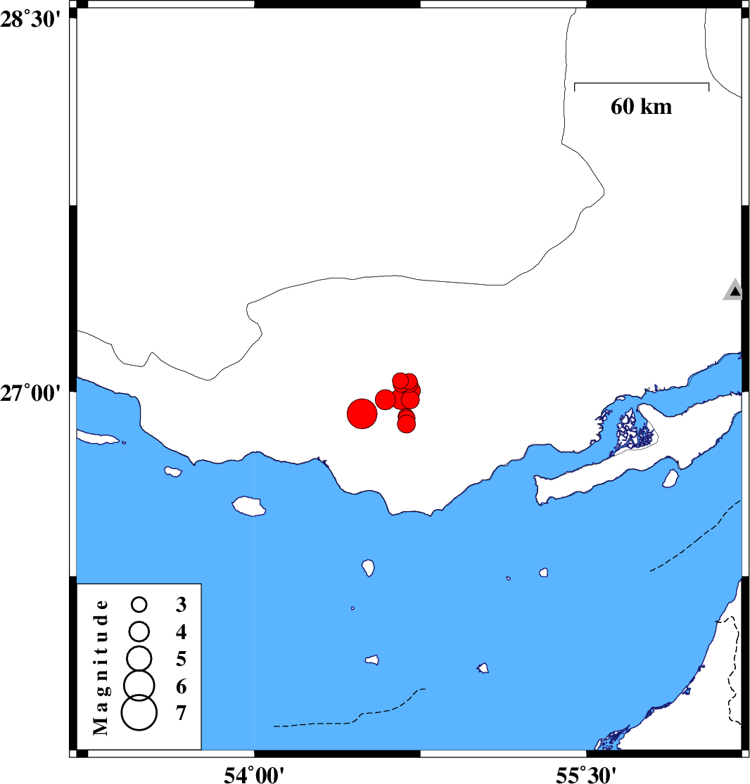 | 2022/03/17 | 03:15:05.7 | 06:45:05.7 | 26.869 | 54.686 | 12 | ML3.6 | Hormozgan Province, 41 km North-West of Bandar-e lengeh | ||