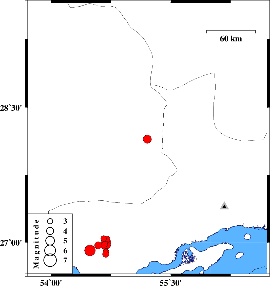 | 2022/03/17 | 03:15:05.7 | 06:45:05.7 | 26.869 | 54.686 | 12 | ML3.6 | Hormozgan Province, 41 km North-West of Bandar-e lengeh | ||