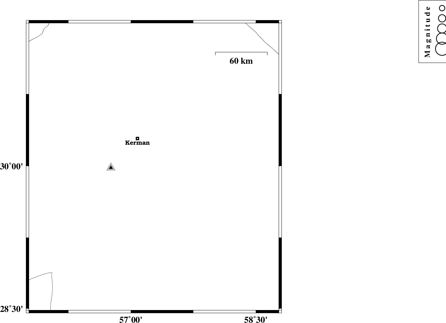 | 2022/03/19 | 08:50:00.4 | 12:20:00.4 | 29.983 | 57.276 | 12 | ML3.1 | Kerman Province, 39 km South-East of Kerman |