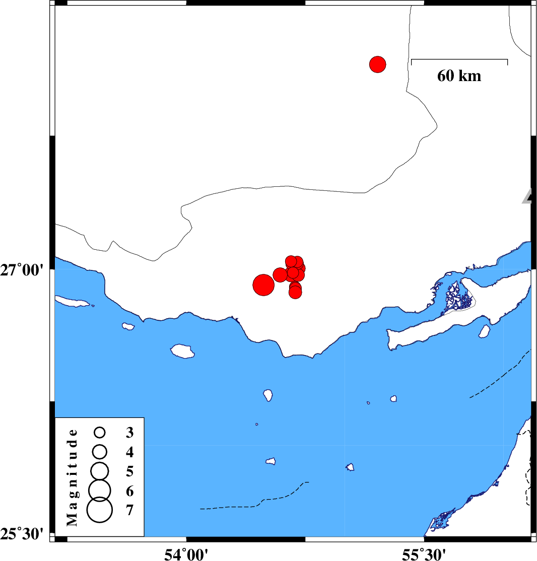| 2022/03/17 | 03:15:05.7 | 06:45:05.7 | 26.869 | 54.686 | 12 | ML3.6 | Hormozgan Province, 41 km North-West of Bandar-e lengeh | ||