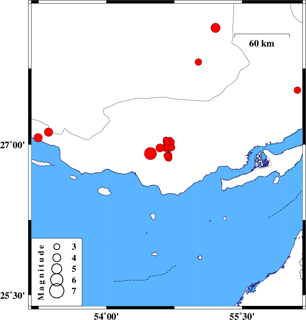 | 2022/03/17 | 06:08:05.0 | 09:38:05.0 | 27.031 | 54.701 | 18 | ML3.4 | Hormozgan Province, 38 km South-East of Bastak | ||