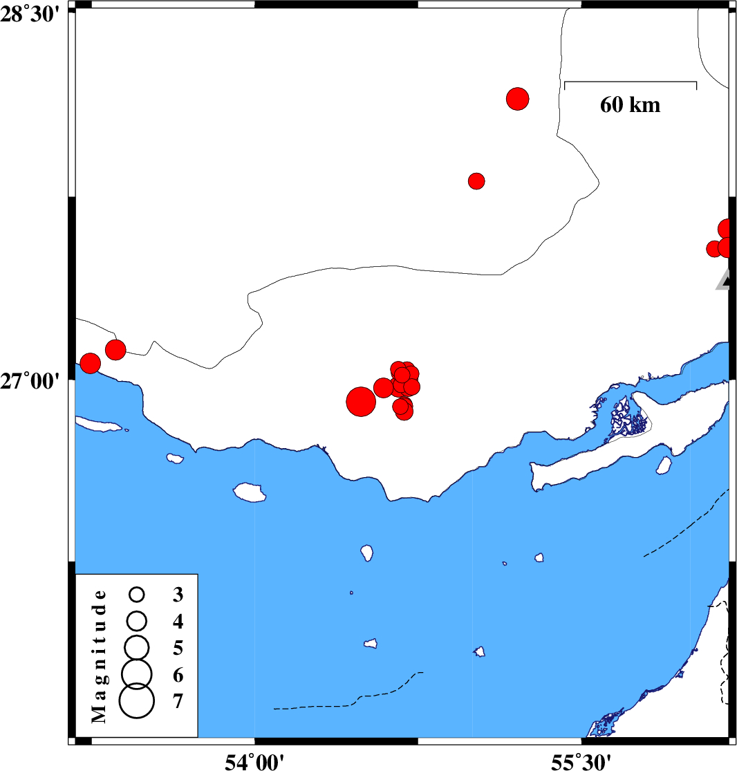 | 2022/03/17 | 03:15:05.7 | 06:45:05.7 | 26.869 | 54.686 | 12 | ML3.6 | Hormozgan Province, 41 km North-West of Bandar-e lengeh | ||