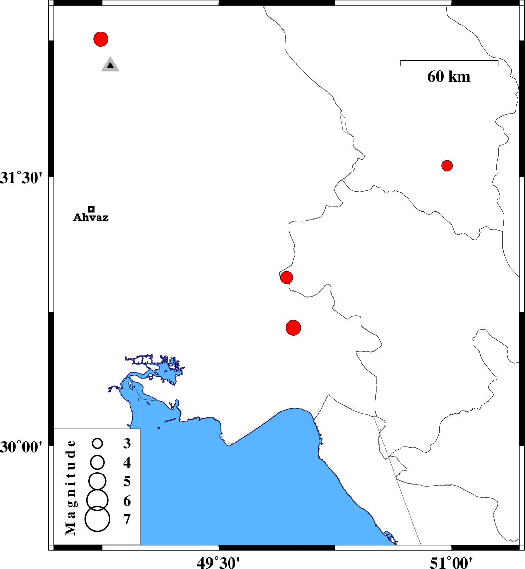 | 2022/03/31 | 04:09:44.6 | 08:39:44.6 | 30.662 | 49.981 | 8 | ML4.4 | Khoozestan Province, 26 km -West of Behbahan | ||