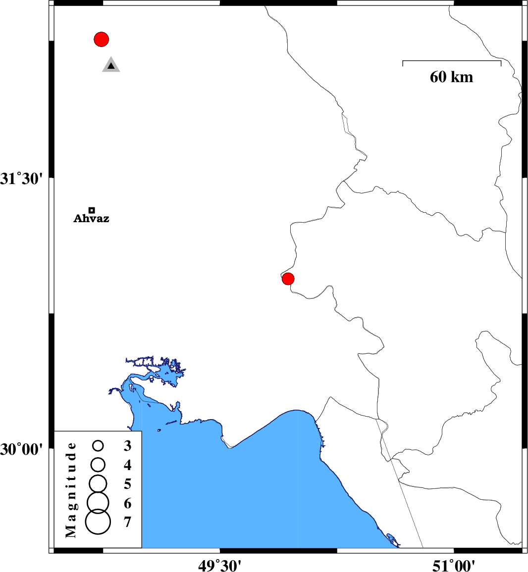 | 2022/04/07 | 13:35:54.5 | 18:05:54.5 | 32.257 | 48.74 | 8 | ML4.2 | Khoozestan Province, 26 km North-West of Shushtar |
