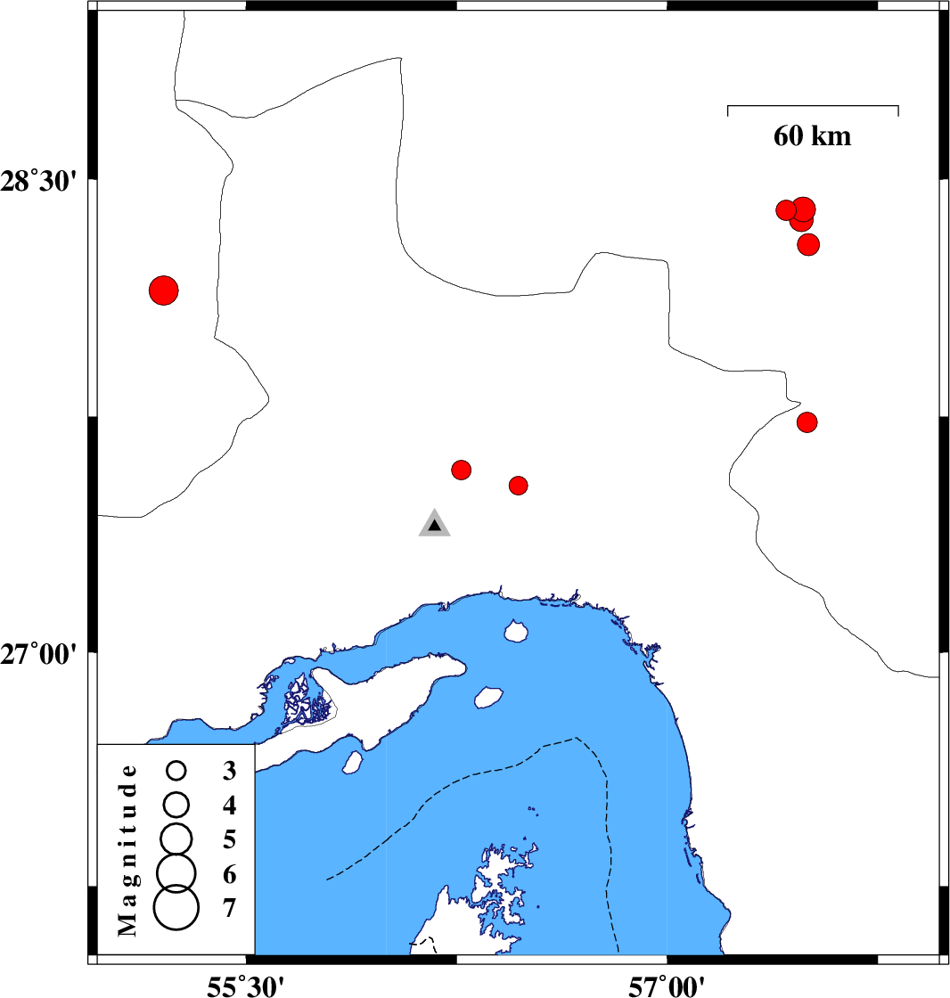 | 2022/03/22 | 08:10:50.4 | 12:40:50.4 | 28.401 | 57.424 | 12 | ML3.2 | Kerman Province, 43 km South-West of Jiroft | ||