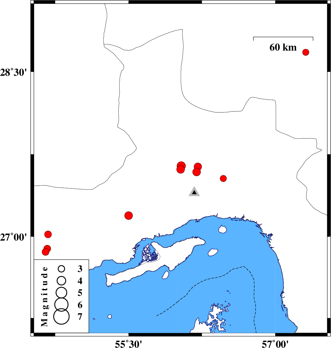 | 2022/03/24 | 22:49:04.2 | 03:19:04.2 | 26.889 | 54.669 | 18 | ML3.3 | Hormozgan Province, 44 km North-West of Bandar-e lengeh | ||