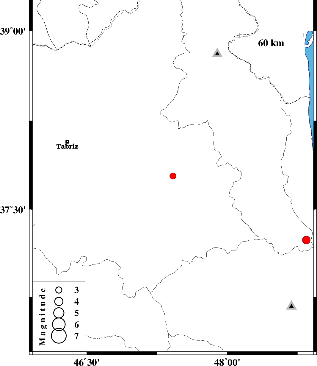 2022/04/20 | 23:30:31.8 | 04:00:31.8 | 37.239 | 48.844 | 8 | ML3.8 | Ardebil Province, 37 km North-West of Abbar |