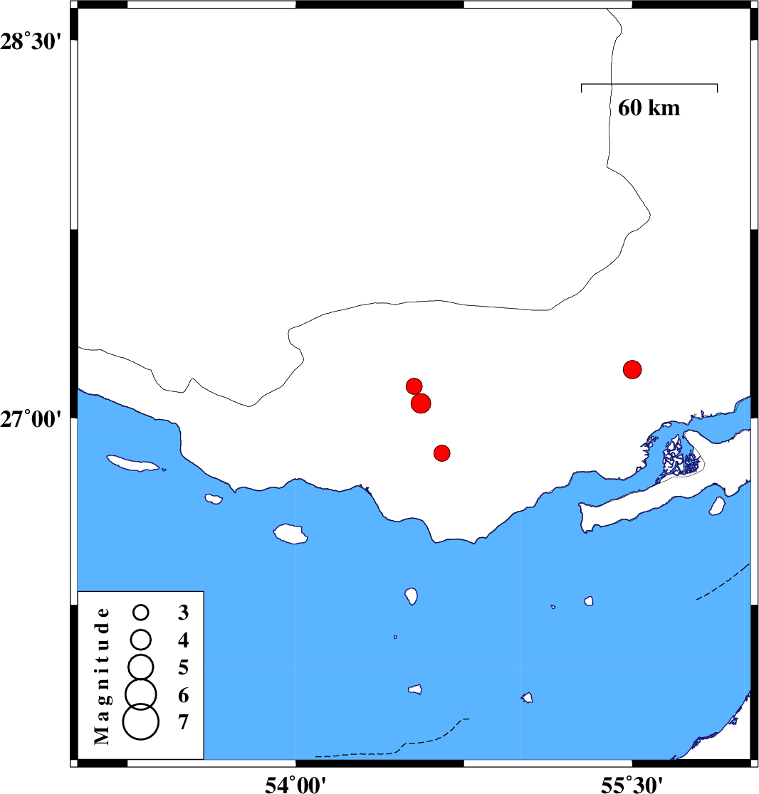| 2022/04/11 | 10:34:40.8 | 15:04:40.8 | 26.858 | 54.651 | 16 | ML3.2 | Hormozgan Province, 42 km North-West of Bandar-e lengeh | ||