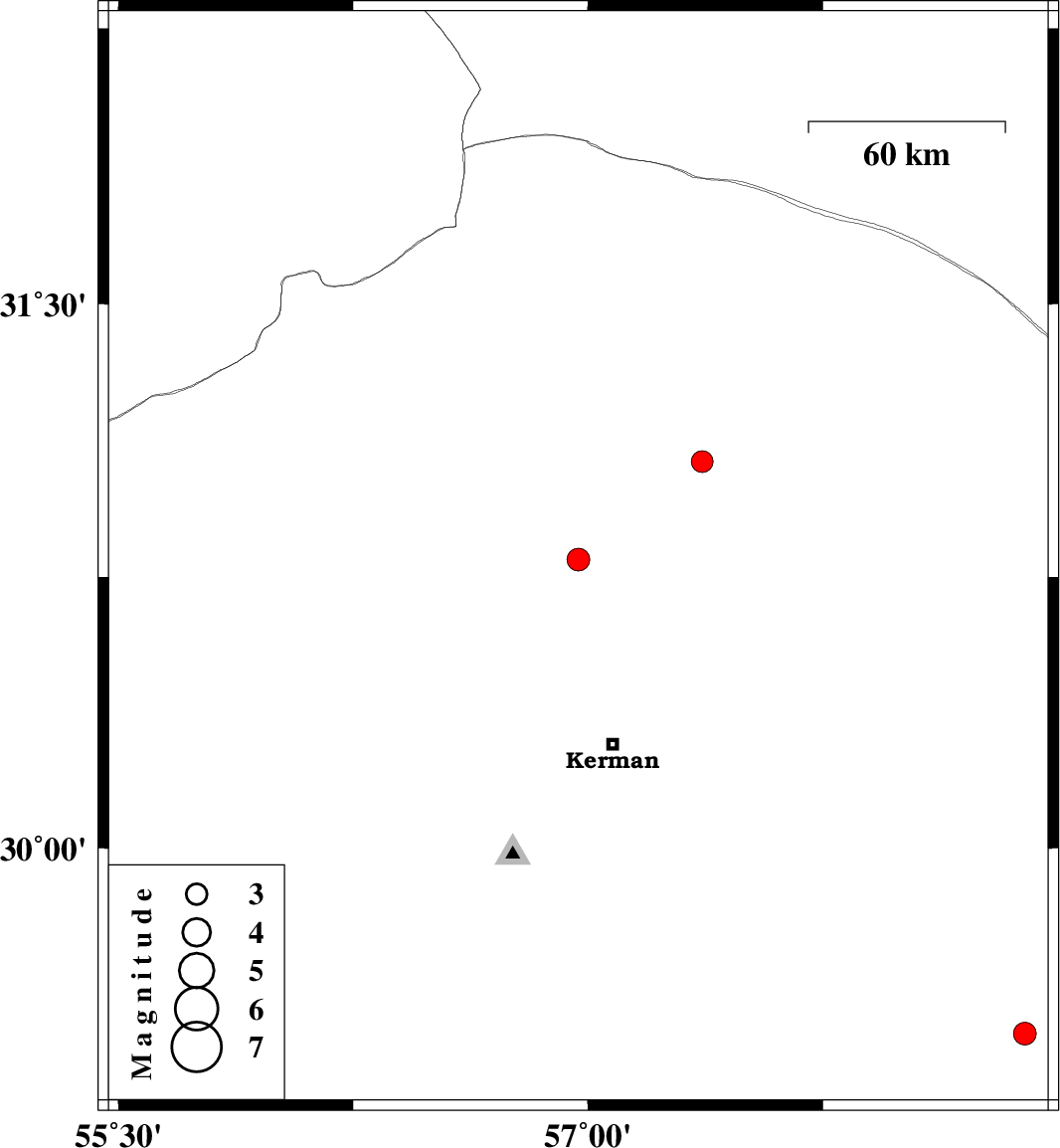 | 2022/04/08 | 06:28:51.9 | 10:58:51.9 | 29.483 | 58.394 | 12 | ML3.2 | Kerman Province, 42 km North of Bam |