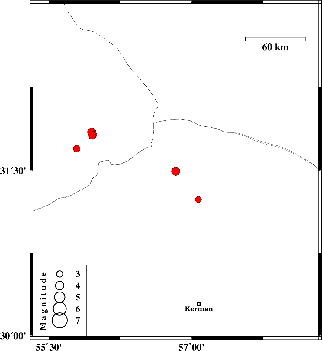 | 2022/05/11 | 13:49:26.6 | 18:19:26.6 | 31.237 | 57.072 | 12 | ML3 | Kerman Province, 25 km -East of Ravar |
