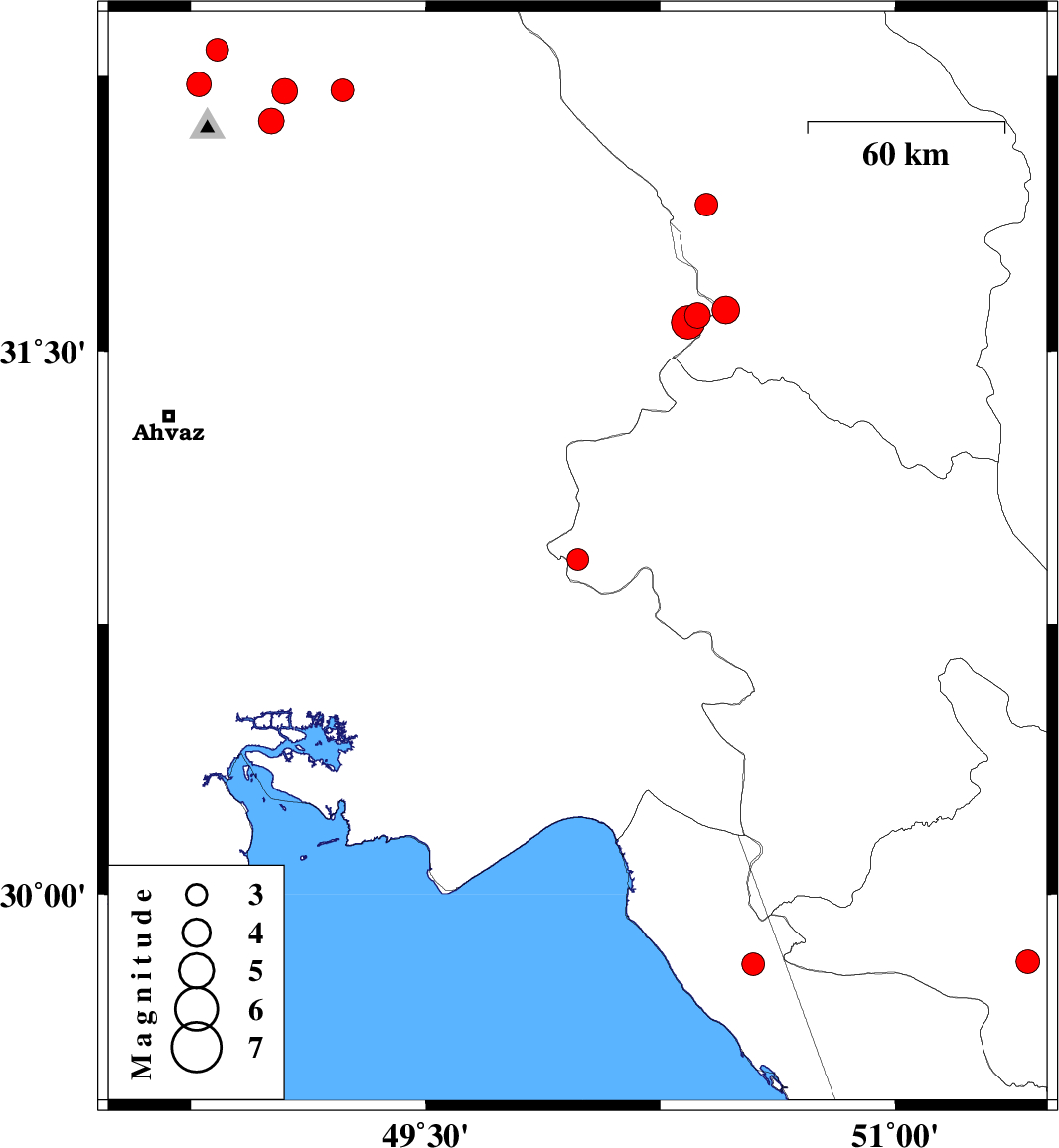 | 2022/05/23 | 10:17:04.6 | 14:47:04.6 | 32.208 | 49.05 | 12 | ML3.7 | Khoozestan Province, 21 km South of Lali | ||