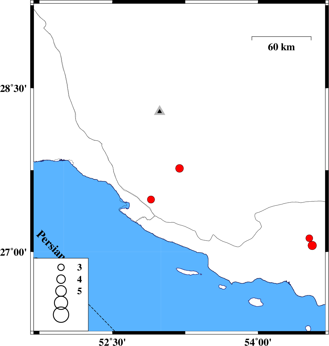| 2022/04/30 | 20:05:52.4 | 00:35:52.4 | 27.058 | 54.557 | 21 | ML4 | Hormozgan Province, 25 km South-East of Bastak |