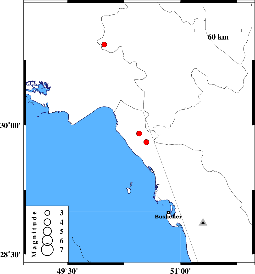 | 2022/05/29 | 16:05:01.9 | 20:35:01.9 | 29.904 | 50.45 | 12 | ML3.2 | Khoozestan Province, 37 km North of Bandar-e genaveh | ||