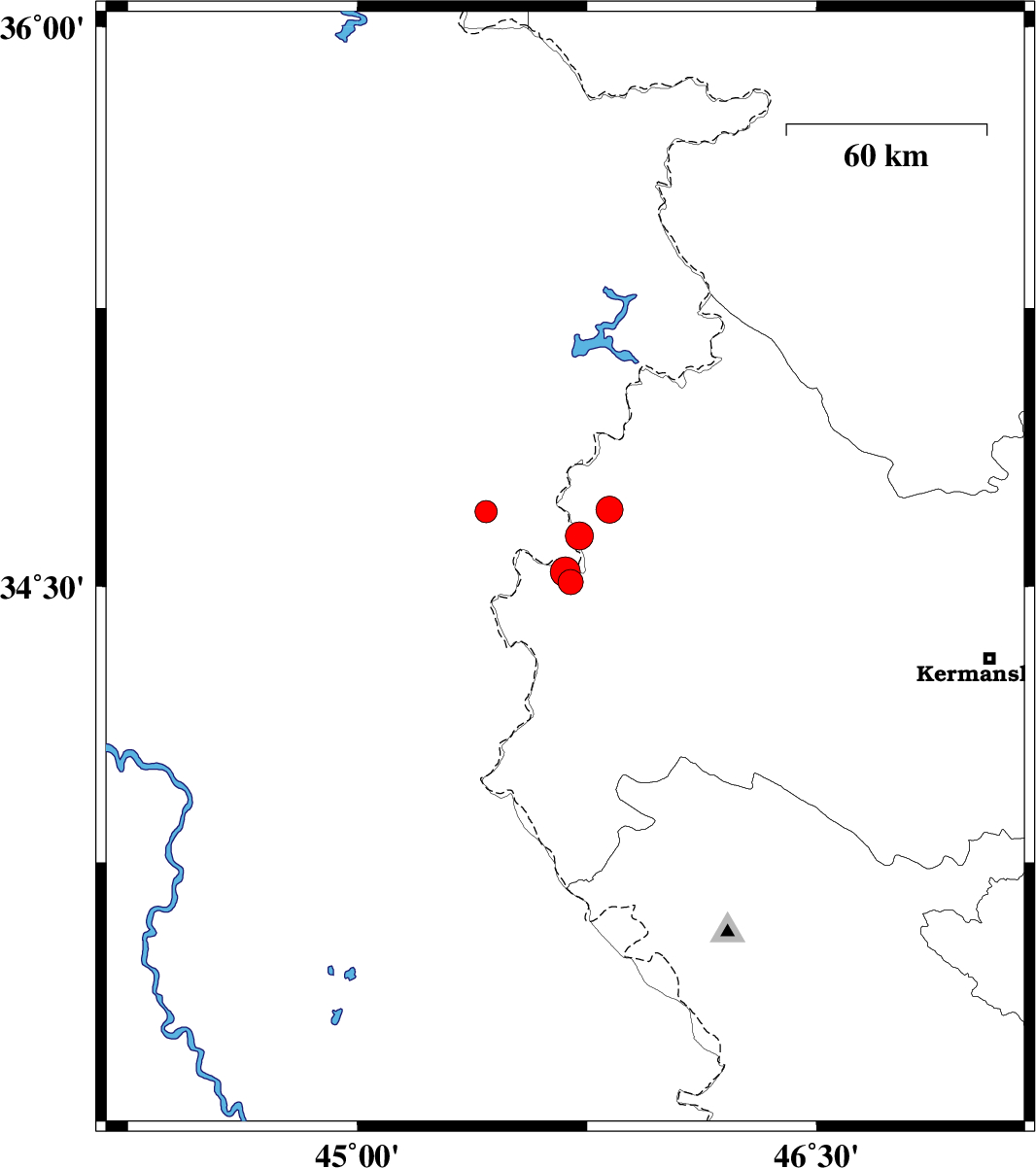 | 2022/05/29 | 05:52:48.9 | 10:22:48.9 | 34.613 | 45.778 | 24 | ML4 | Kermanshah Province, 17 km South of Tazehabad | ||