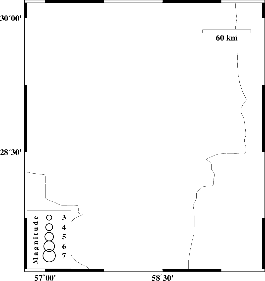 | 2022/06/08 | 00:53:52.8 | 05:23:52.8 | 28.669 | 58.27 | 15 | ML3.2 | Kerman Province, 50 km South of Bam |