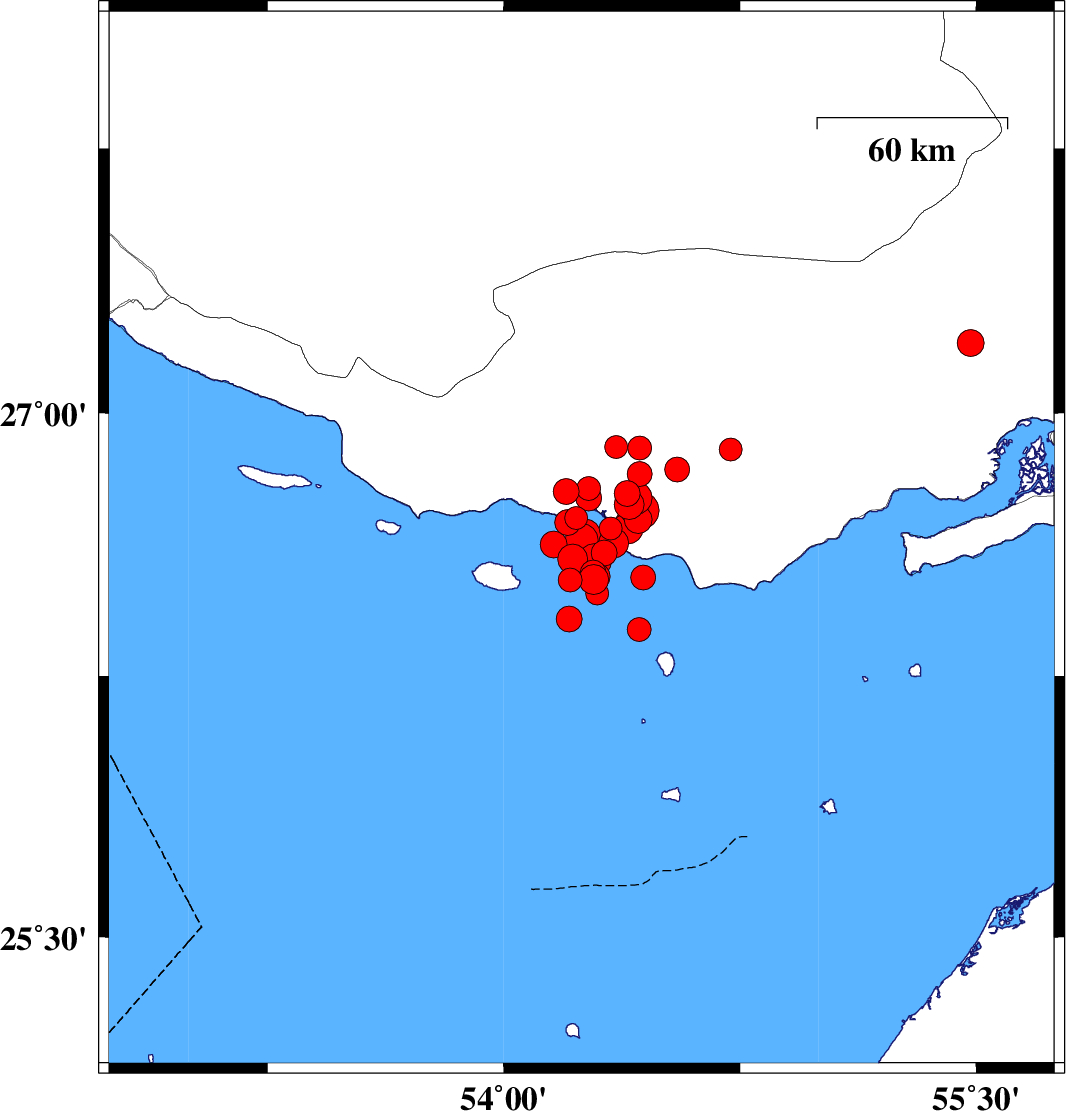 2022/06/15 06:04:38.7 10:34:38.7 26.5854.28926 ML4.8 Persian Gulf, 56 km -West of Bandar-e lengeh