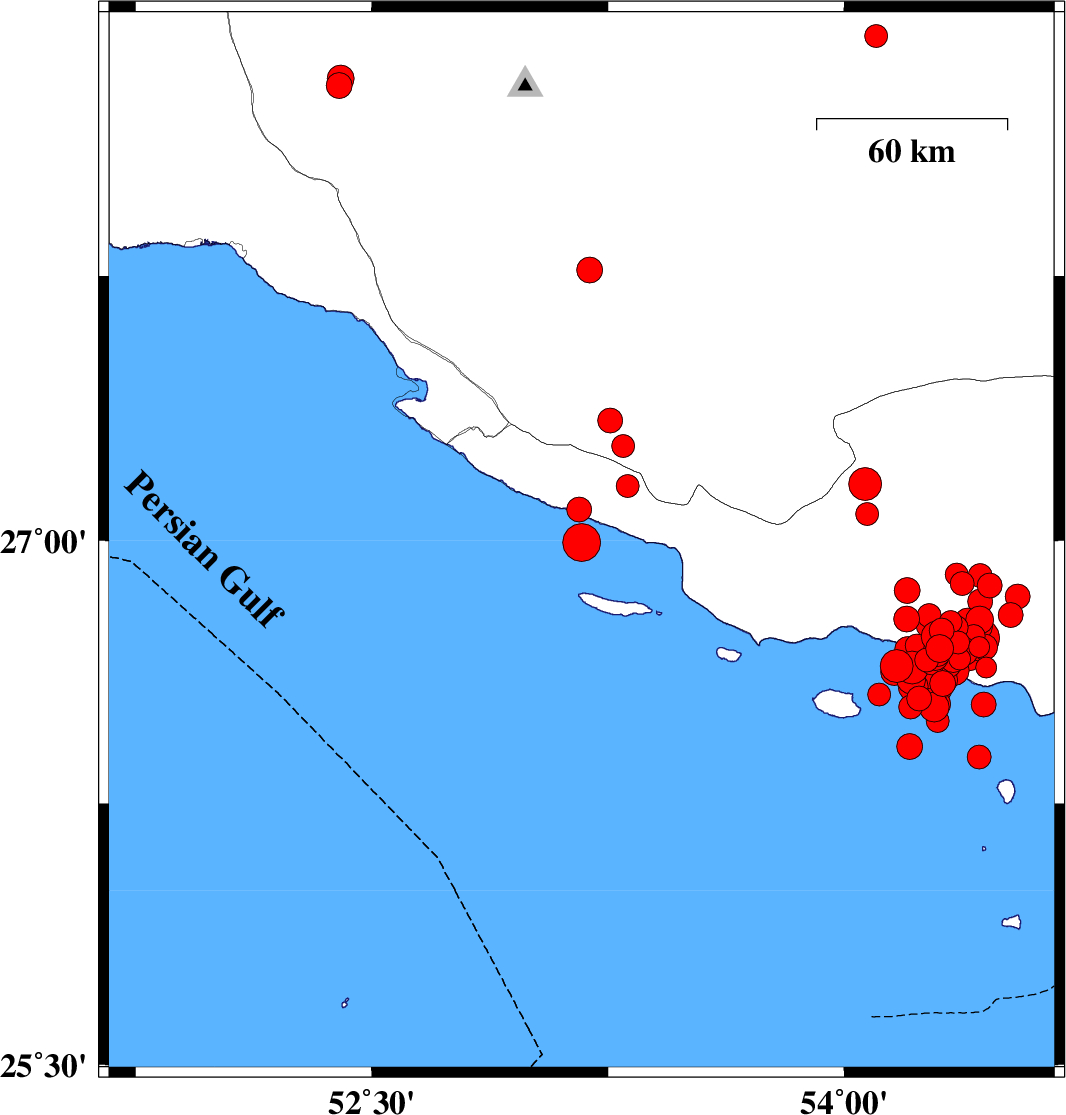 | 2022/06/21 | 07:05:05.4 | 11:35:05.4 | 26.692 | 54.303 | 19 | ML4 | Persian Gulf, 57 km South of Bastak | ||